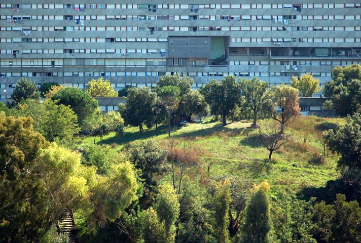 Rome, Corviale, 1972-1982. Au centre de l’image, la galerie commerciale, abandonnée et squattée. (image: flickr)