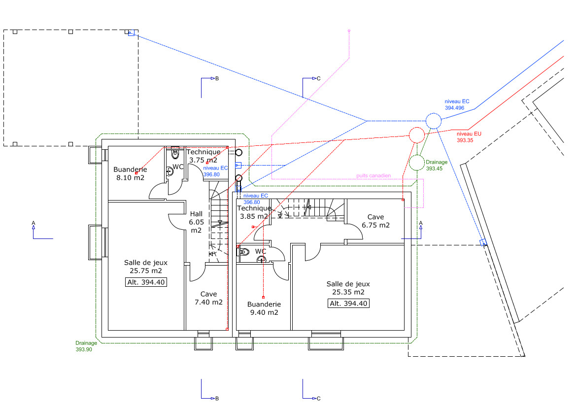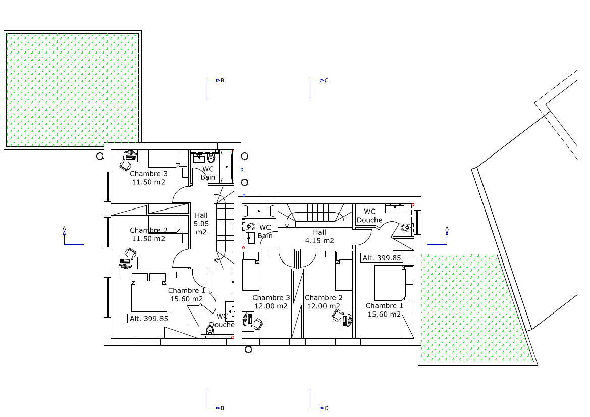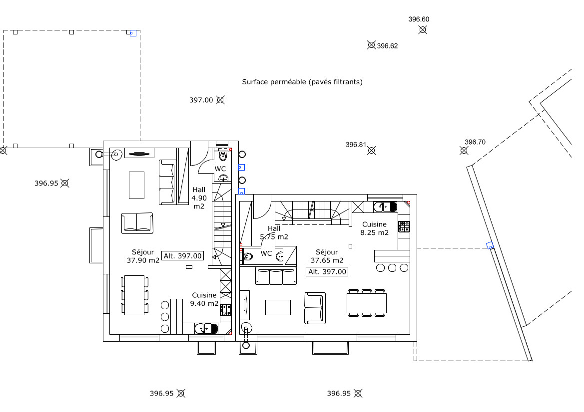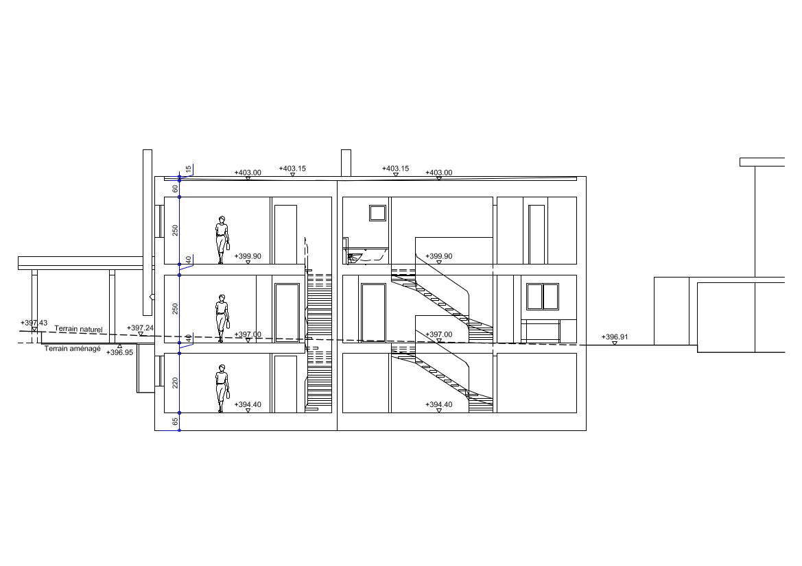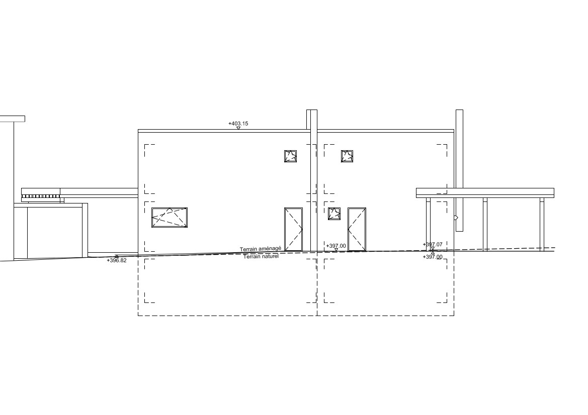 Cette fois-ci, je vous montre projet non réalisé, celui de deux villas mitoyennes dans le canton de Genève. Donc, en lieu et place des photos, ici il y aura des dessins.