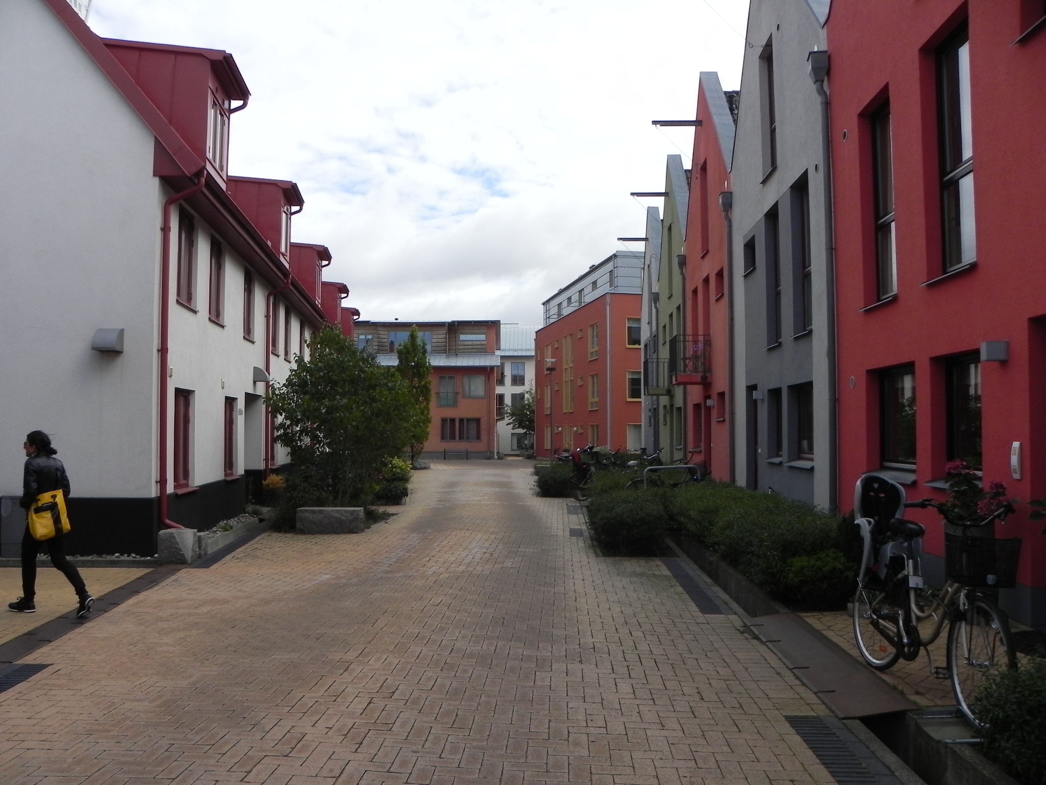 - Des rues résidentielles (environ 6 m de largeur) principalement pour les piétons, avec quelques voitures: