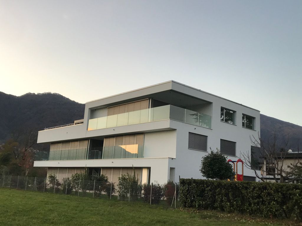 C’est un imeuble avec des grands balcons au Sud et des grandes baies vitrées, qui permettent aux habitants de profiter de la douceur du climat tessinois.
