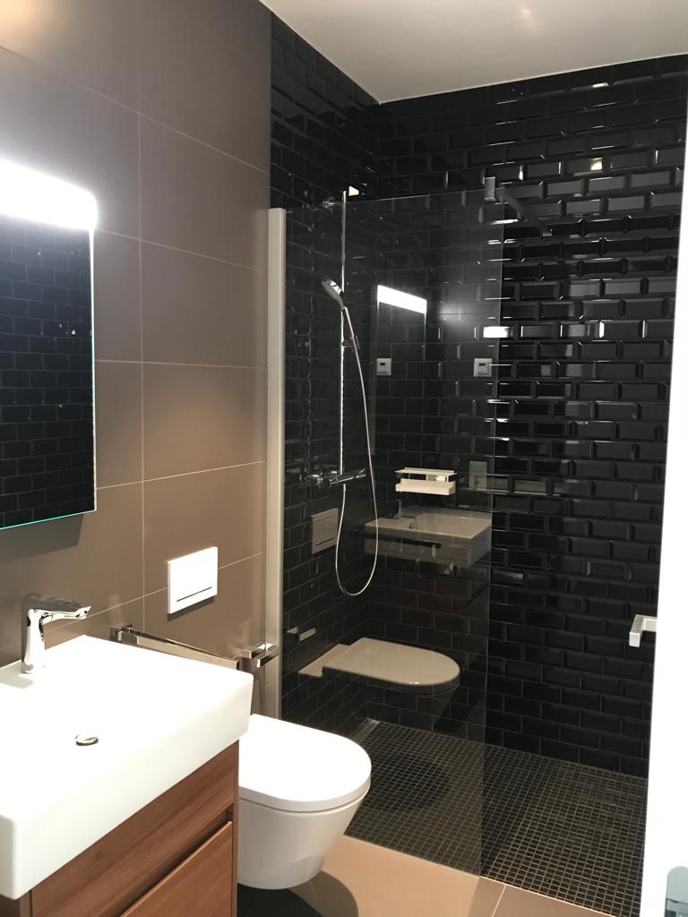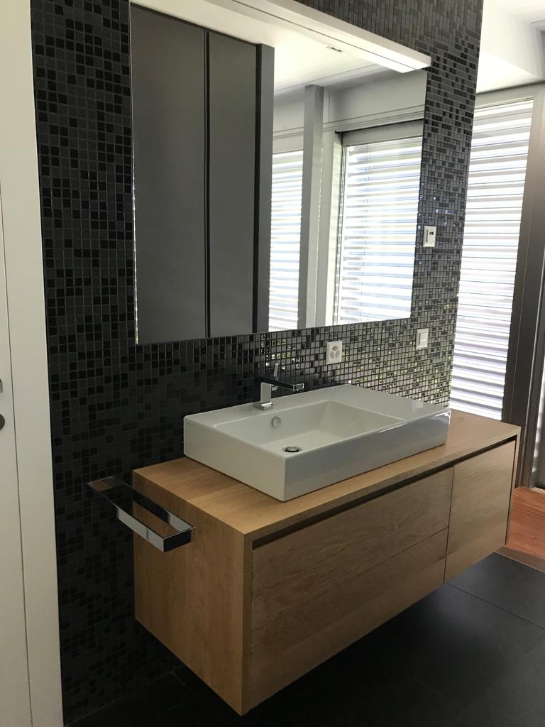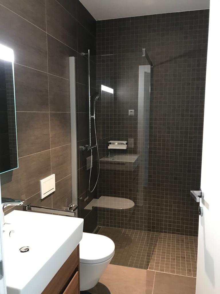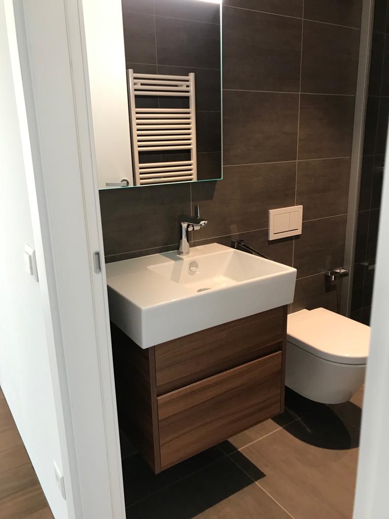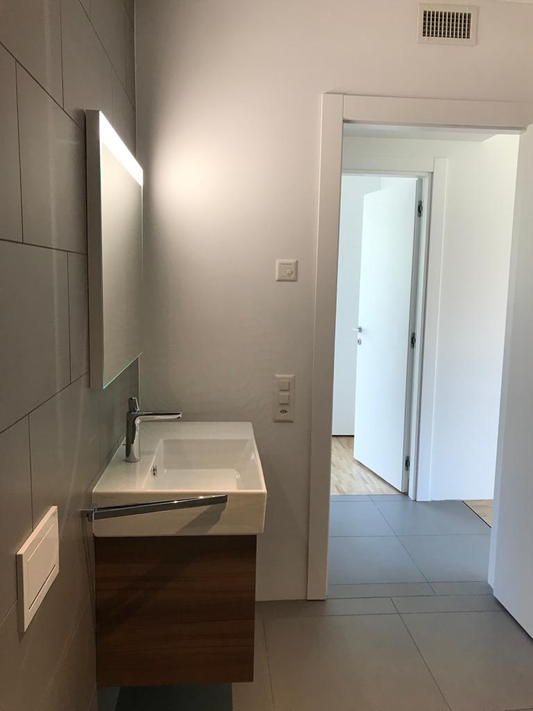 Après avoir vu les extérieurs et les cuisines de notre immeuble à Lamone TI, continuons avec les salles de bains.