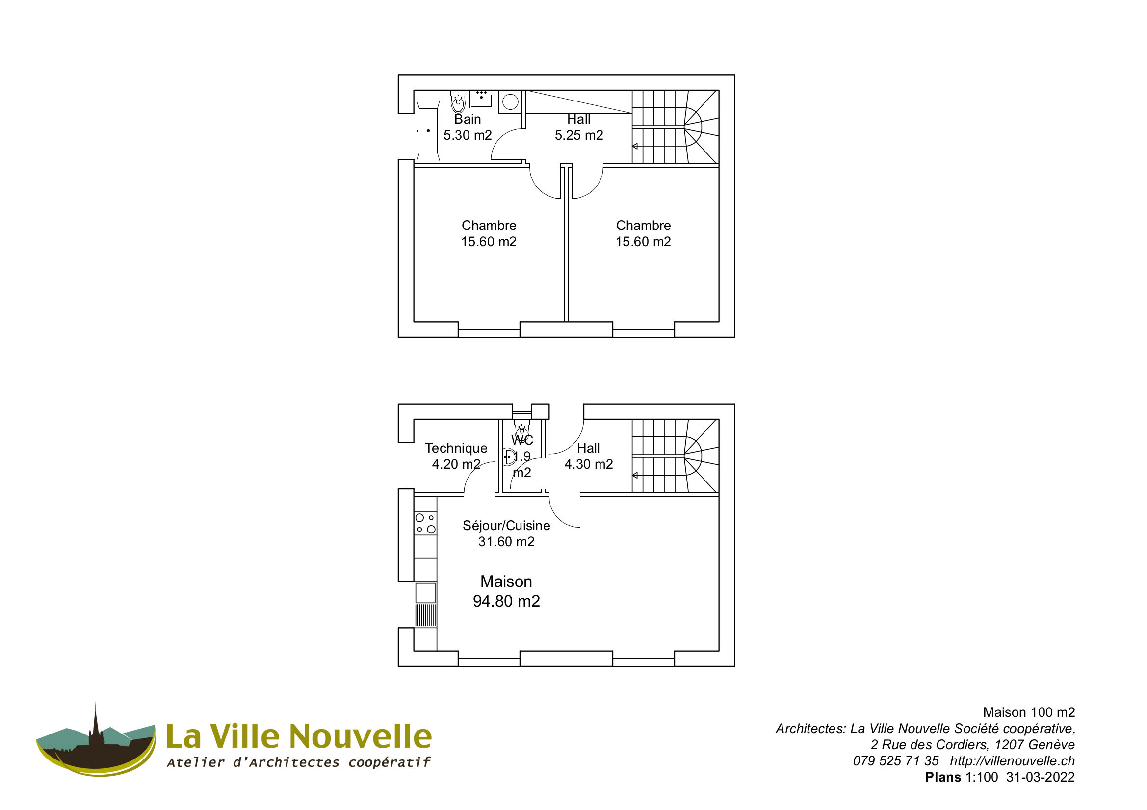 Maison 95 m2, 2 chambres, 430’000 CHF HT
