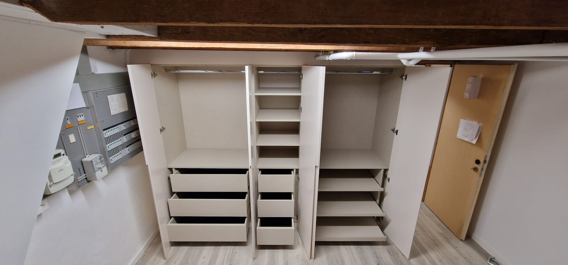 Cette maison située à Genève a bénéficié d’une rénovation ciblée visant à améliorer son agencement intérieur et son confort au quotidien. Trois axes principaux ont guidé cette transformation : l’installation d’armoires sur mesure dans les chambres, la création d’une buanderie fonctionnelle et la réfection complète des salles de bains.