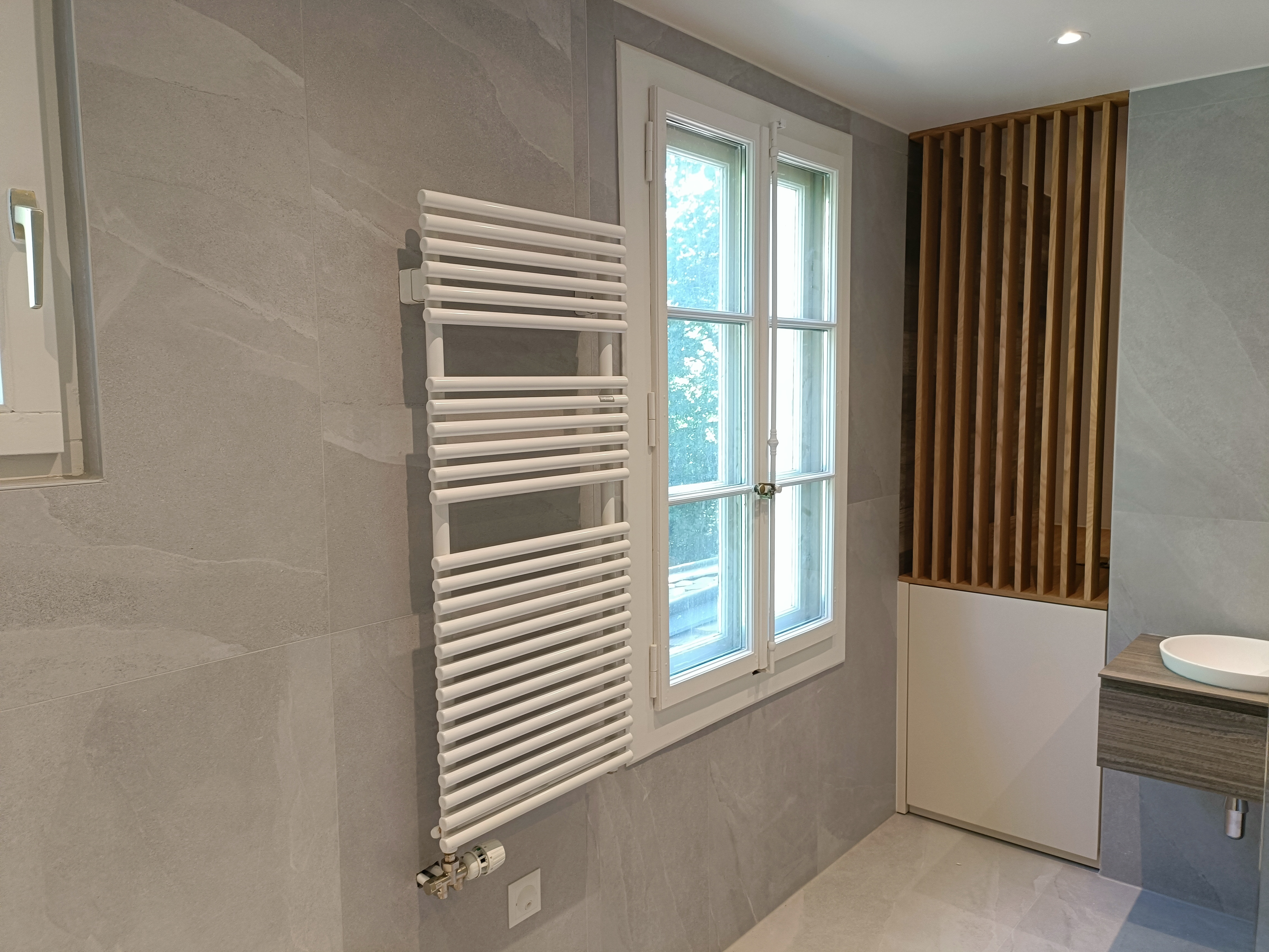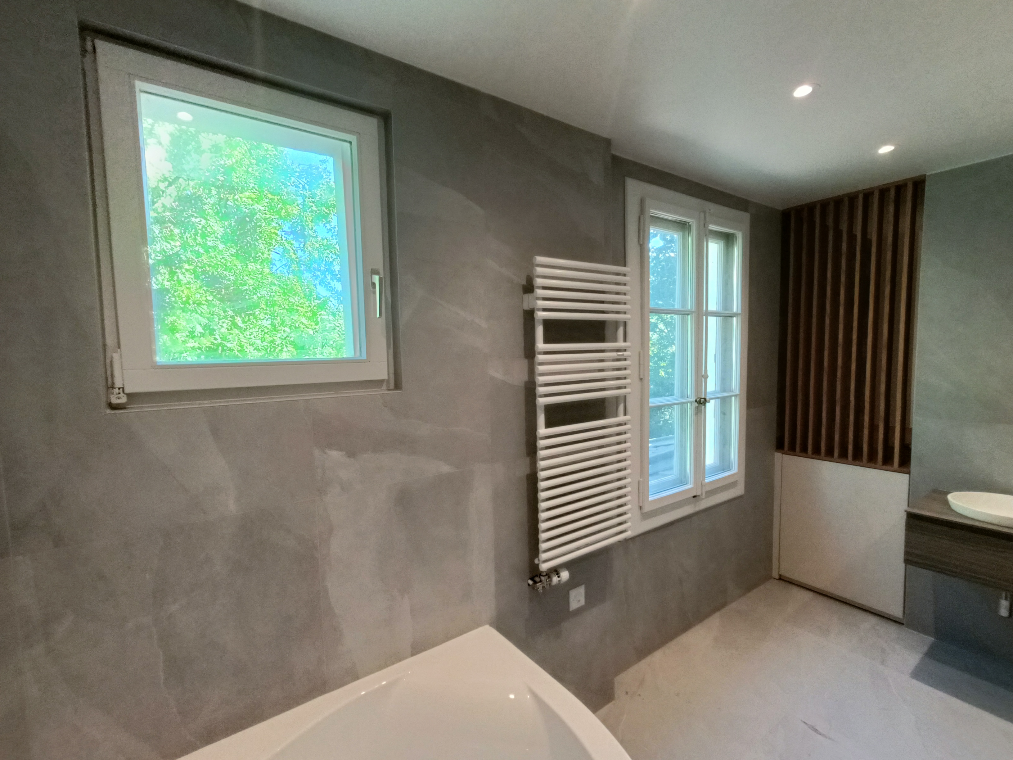 Les salles de bains ont été entièrement rénovées, avec des matériaux haut de gamme et des finitions soignées. L’objectif était d’apporter plus de confort et d’esthétique tout en optimisant leur fonctionnalité. Les nouveaux équipements et les revêtement modernes créent une atmosphère raffinée et apaisante.